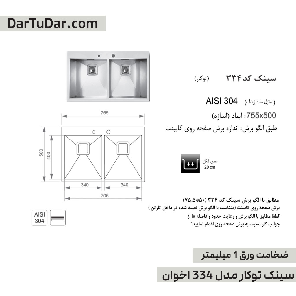 سینک 334 اخوان مناسب برای آشپزخانه های کوچک