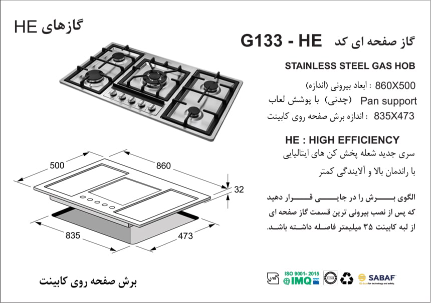 ویژه کد بانوهایی است که میخواهند سطح کیفی آشپزی خود را بالا ببرند. این گاز صفحه ای با ابعاد 50*86 سانت ،طراحی بدون نقص و گارانتی 18 ماهه از پرفروش ترین گاز توکار بازار ایران است.