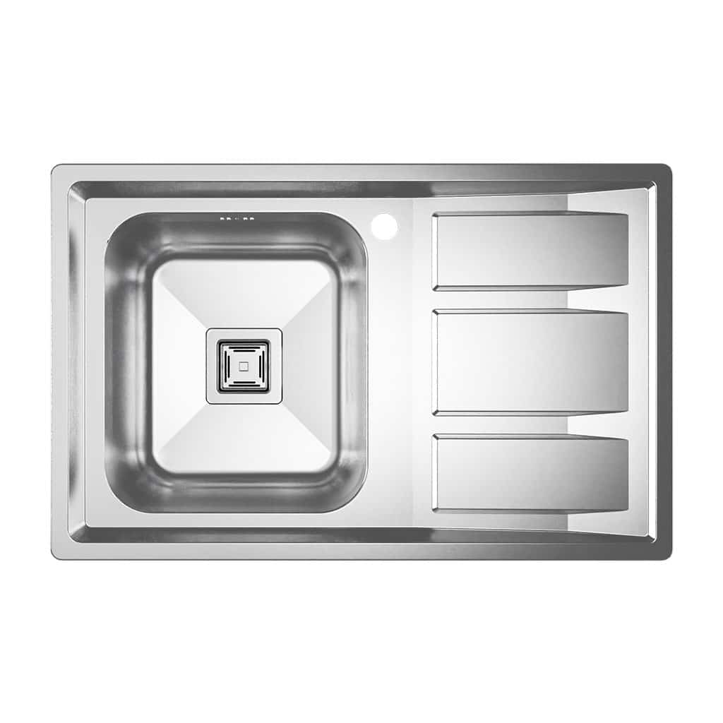 این سینک با ابعاد خارجی 80 در 51 و ابعاد برش 77 در 47.5 سانتیمتر، بهراحتی در اکثر کابینتهای استاندارد نصب میشود و نیازی به تغییرات اساسی در صفحه کابینت ندارد.