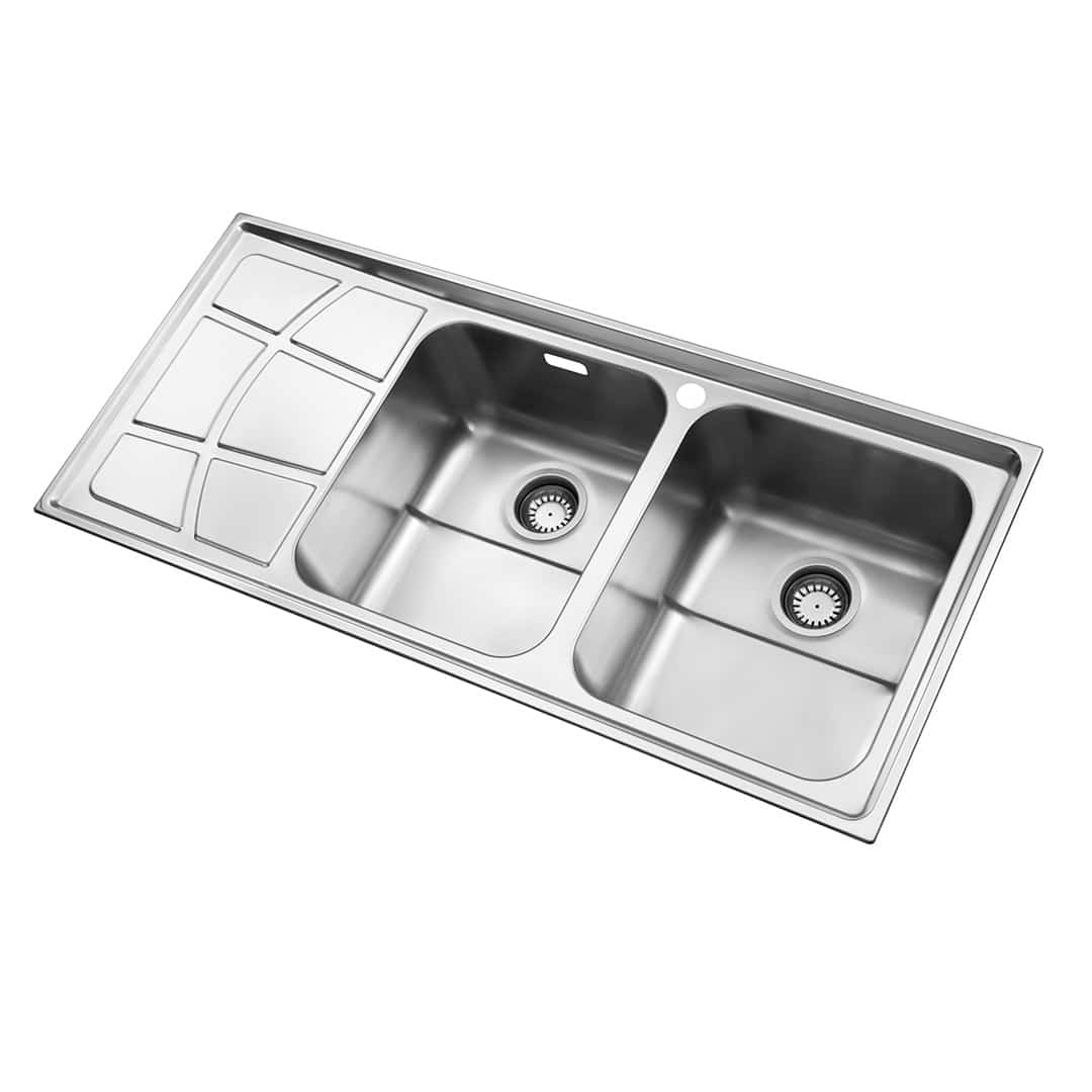 سینک 762 توکار استیل البرز، دو ویژگی مهم زیبایی و کیفیت را باهم دارد. این محصول از محبوب ترین انواع سینک آشپزخانه است. دو لگنه بودن این سینک امکان شستشو از یک طرف و آبکشی یا خشک کردن از سمت دیگر را فراهم می کند.