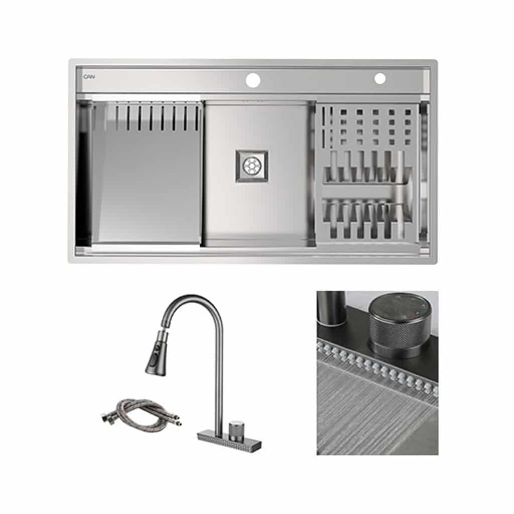 سینک توکار مدل BCN304 شیر آبشاری کن با مکانیزم آبشاری رنگ دودی